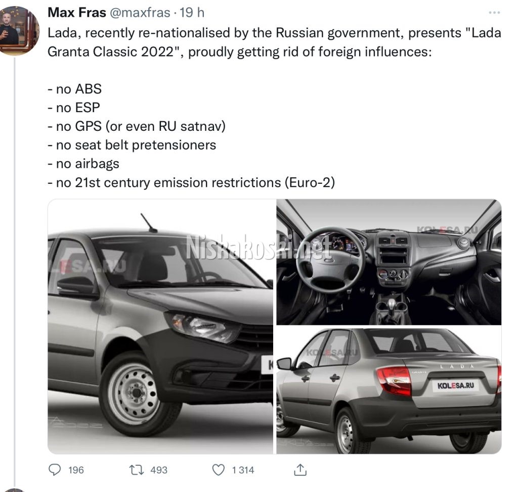 Renault valde att släppa sitt majoritetsinnehav i AvtoVAZ. Dem handelspolitiska embargon som införts fick konsekvenser i form av att teknikleverantörerna i väst slutade leverera teknikinnehåll så som ABS-systen, Antisladd, Airbags, elektronik till mediaenheter osv. Även möjligheten att leverera teknik för motorstyrning gör nu att fabriken väljer att numera bara klara miljöklass Euro2 vilket är ett stort steg tillbaka teknikmässigt.
